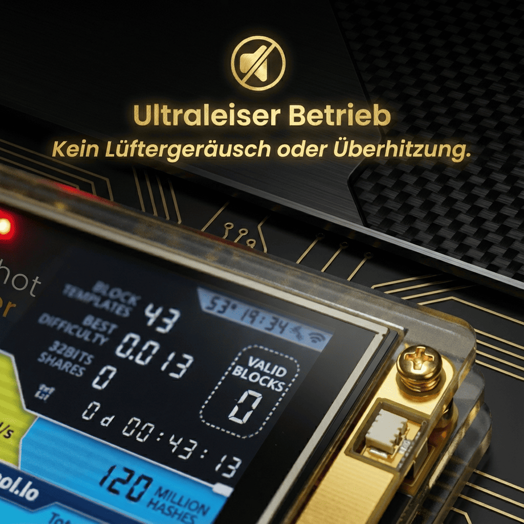 Einfach das Gerät an einen USB-C-Port anschließen, mit deinem WLAN verbinden, und du bist sofort Teil des globalen Bitcoin-Netzwerks – bereit, dein Glück zu versuchen.